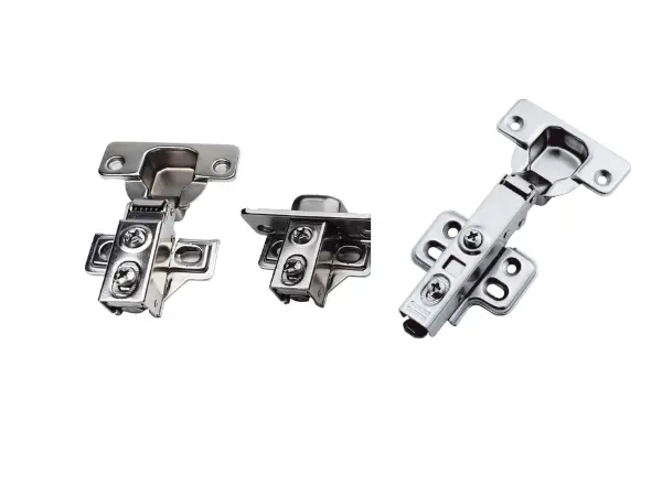 Half overlay cabinets feature doors that only partially cover the cabinet frame, often sharing a single partition with two doors. Hinges for this style ensure proper alignment and spacing. Regular, soft-close, or fixed hinges can all work, depending on your preference.
